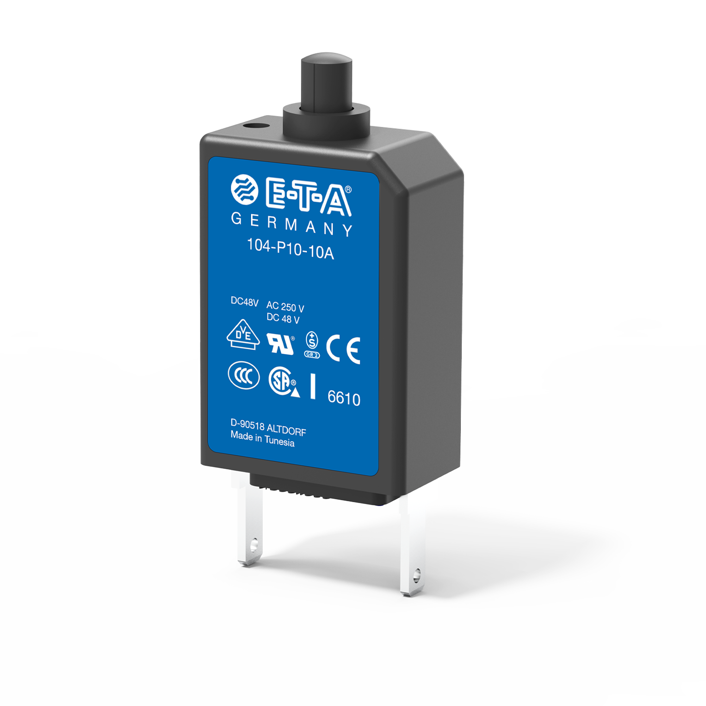 Miniaturised single pole thermal circuit breaker with push-to-reset tease free, trip-free, snap action mechanism (R-type TO CBE to EN 60934) integral type.