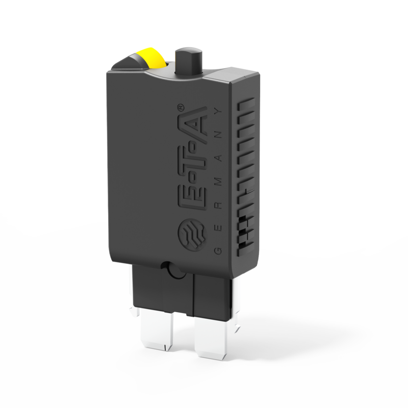 Compact single pole thermal circuit breaker with push-to-reset, tease free, trip free, snap action mechanism and separate (colour coded) manual release. Combining full feature circuit breaker protection and convenience with low cost of ownership benefits. Fitted with blade terminals for plug-in mounting.